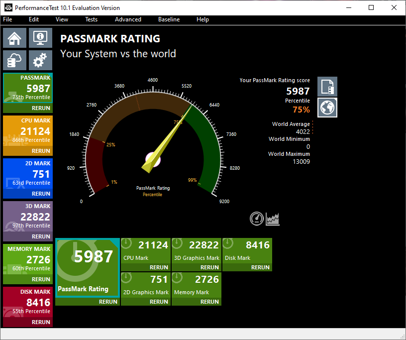 Benchmarks are silly. That said I ran the PassMark performance test to see how my computer would rank against "the world".