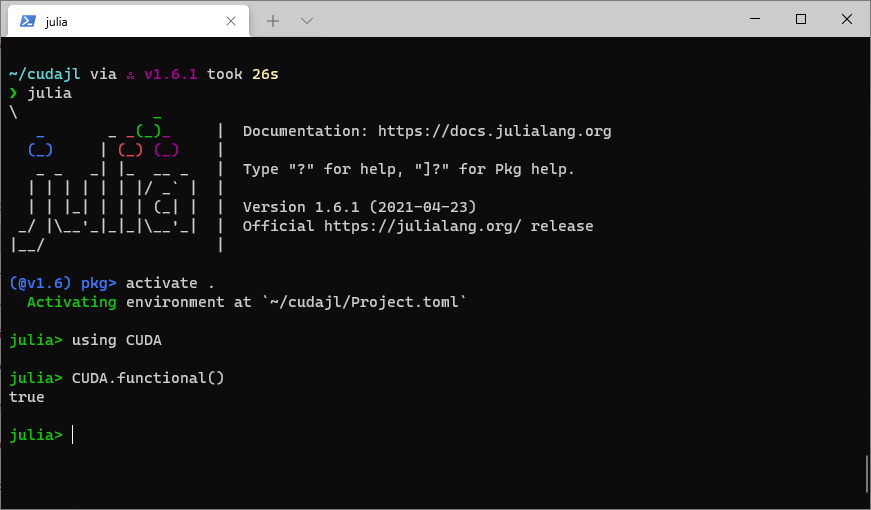 A walkthrough on how to get started with Julia GPU programming under WSL2 on Windows.