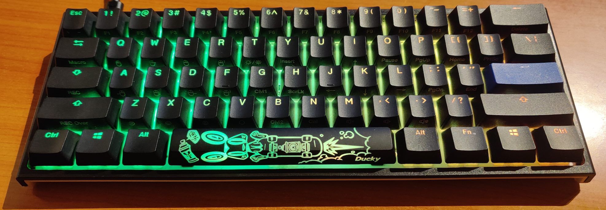 Initially, I bought a Ducky One 2 Mini RGB. Not at all an ergonomic upgrade, but I thought it would be enough of a change to relieve me of the pain. After just a few days of typing on it, I could already tell this wasn't working for me. I also struggled to get used to not having arrow keys available and ended up not liking the high keys as much as I thought.
