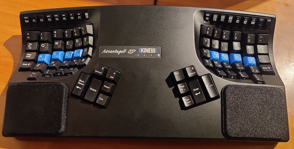 This finally brings me to the Kinesis Advantage 2 QD. I've first come across this keyboard in a review by Martin Fowler. After more research and a deep look into my pockets, I decided to give this keyboard a shot. After all, not being able to type because of wrist pain would eventually cost me more than this keyboard.
